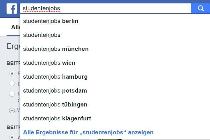 - Lokale Facebook-Gruppen für Studentenjobs: