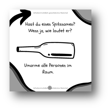 Ich habe dir hier ein Bild von einem „Flaschendrehen-Buch“ mitgebracht. Klar, hier ist Text dabei, aber deutlich weniger als in einem klassischen Roman. Die Erstellung ist im Vergleich natürlich auch deutlich unkomplizierter, da du einfach ein Layout wählen kannst, welches sich jede Seite wiederholt und du nur die Fragen änderst.